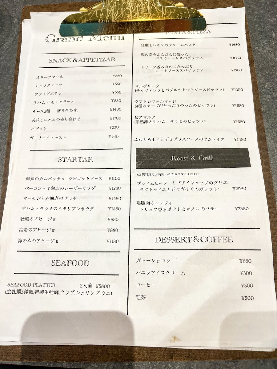 - Dinner Delights: The Seafood Platter is a must-try, perfect for shared moments with loved ones. Priced at JP¥5,800, it highlights exquisite oysters and seafood. For pasta lovers, the Pesceatore Spaghetti is a flavorful feast of fresh seafood.